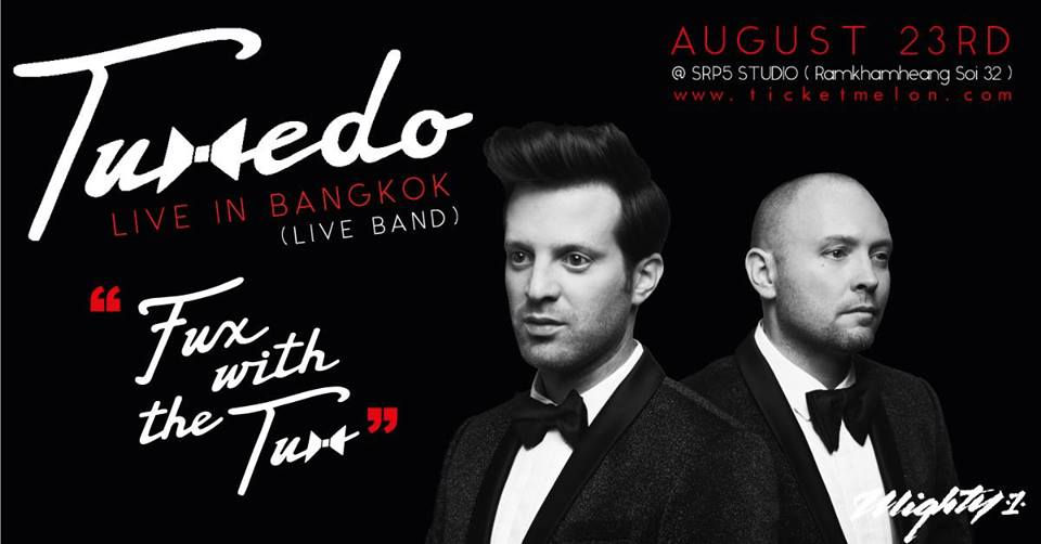 Tuxedo live in Bangkok 2017 Date: Aug 23 Location: SRP5 Studio Ticket: 3 Phases: 2,200 / 2,500 / 2,800 Baht Detail: https://www.facebook.com/events/1964885577077381